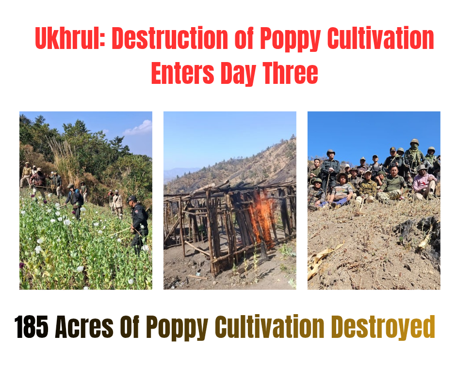 The ongoing destruction of poppy cultivation by the combined forces of Ukhrul Police, 6th Manipur Rifles, Forest Department and 18 Assam Rifles enters its 4th day. On Friday, a combined…