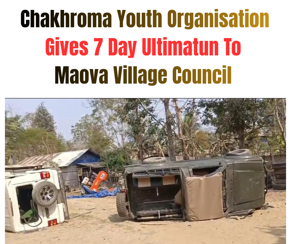 The Chakhroma Youth Organisation, Headquarters Medziphema, Chumoukedima District, Nagaland on Monday served a 7 day ultimatum to the Chairman of Maova Village Council.The press release issued by the Information &…