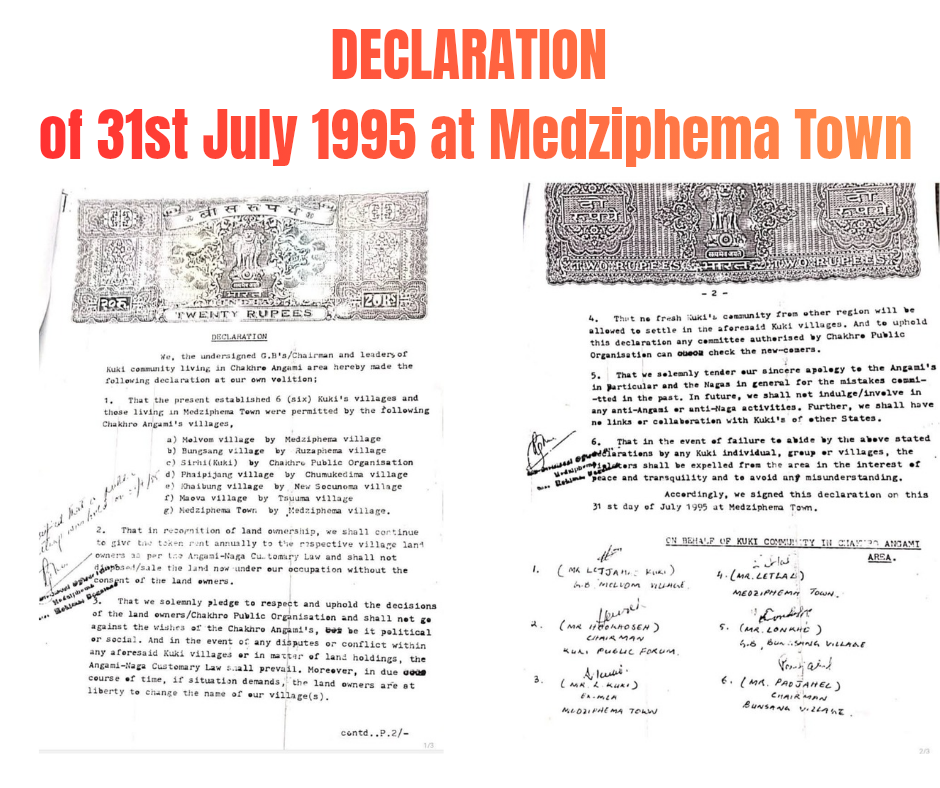 We, the undersigned G.B's/Chairman and leaders of Kuki community living in Chakhro Angami area hereby made the following declaration at our own volition;1. That the present established 6 (six) Kuki's…