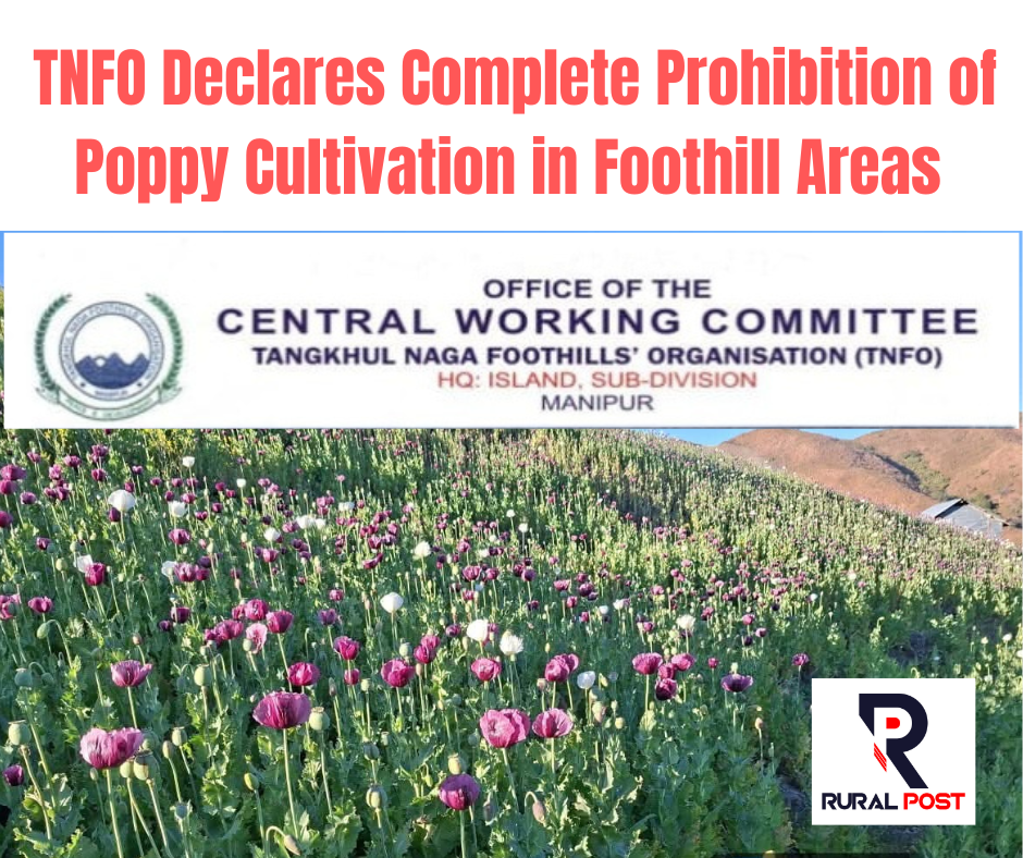 The Tangkhul Naga Foothills Organization (TNFO) hereby categorically declares that poppy cultivation shall not be permitted in the foothill areas of Ukhrul, Kamjong, and Kangpokpi districts of Manipur, irrespective of…