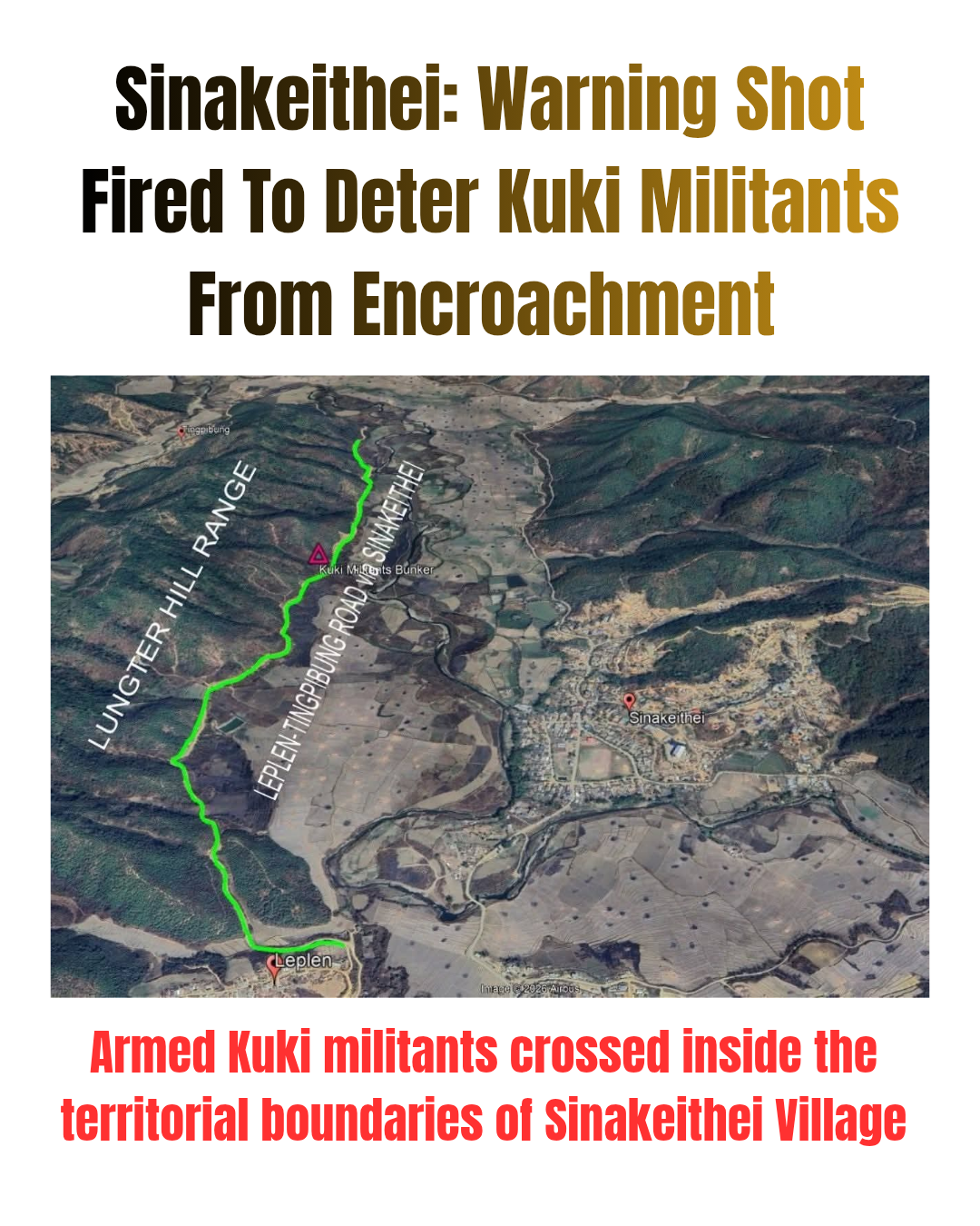 Armed Kuki militants crossed inside the territorial boundaries of Sinakeithei Village on Saturday, a warning shot was fired by the locals stationed at the bunkers to deter the Kuki militants…