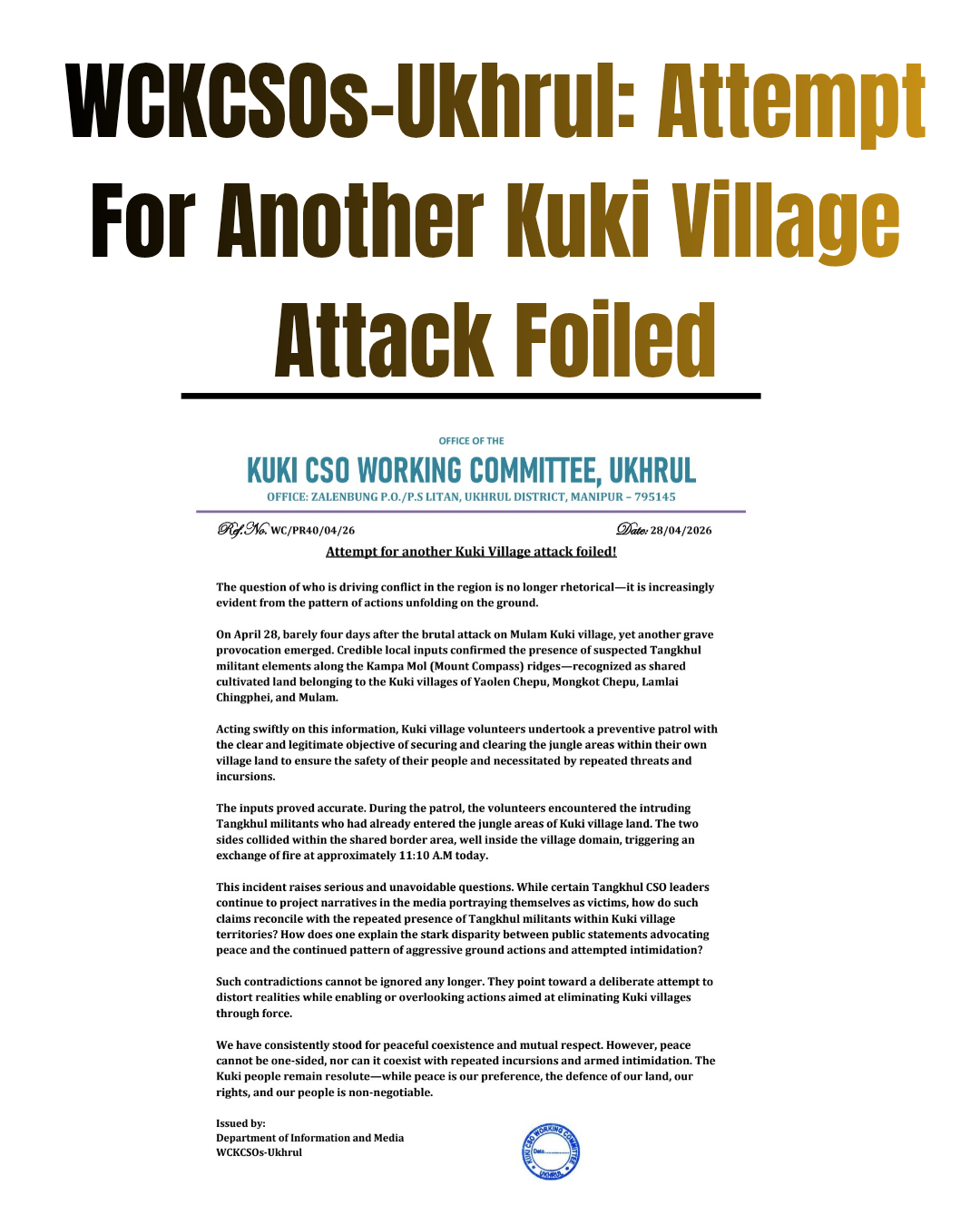 WCKCSOs-Ukhrul: Attempt For Another Kuki Village Attack Foiled