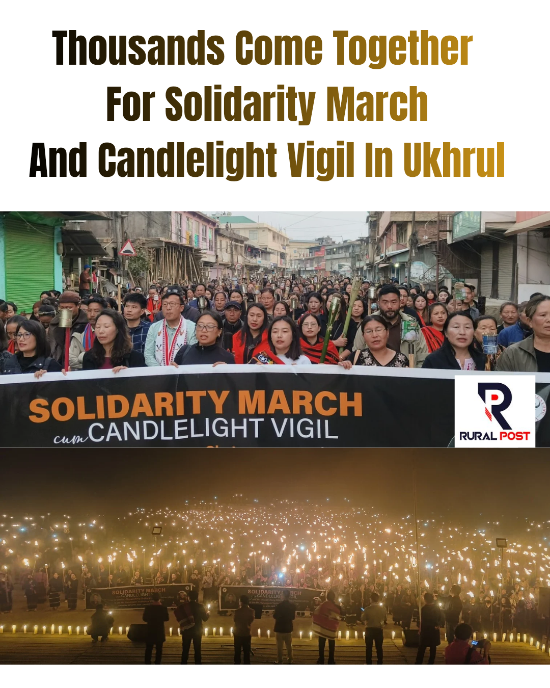 Thousands of people turned up for a solidarity march cum candlelight vigil at Ukhrul Headquarters in honour of Late. Chinaoshang Shokwungnao of Tashar Village and Late. Yaruingam Vashum of Kharasom CV who were killed by suspected Armed Kuki Militants on 18 April 2026 at TM. Kasom, Ukhrul District, Manipur, along National Highway 202.